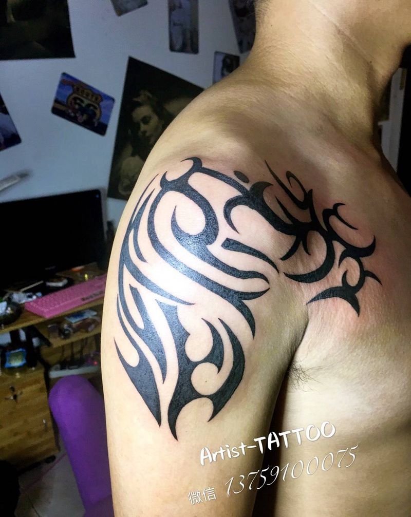• 纹身吧推荐的披肩图腾半胛纹身图案作品展示