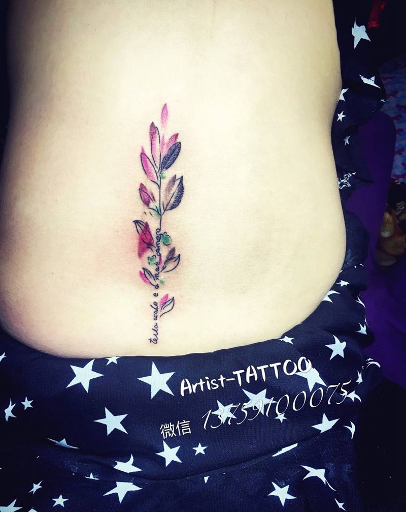 • 东方性感美女腰部温馨花藤图纹身图片