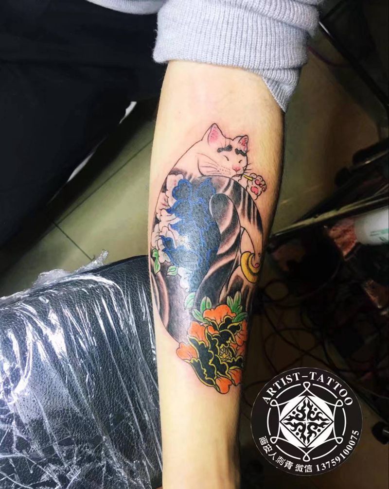 • T招财猫纹身图片