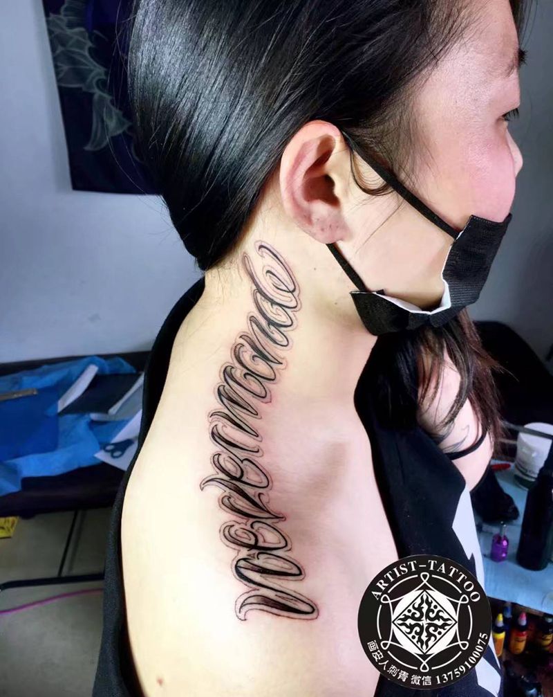 奇卡诺字体纹身图片_颈部肩部花体字纹身图案