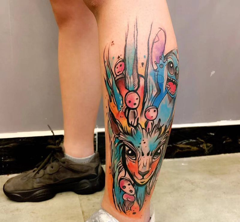 宫崎骏组合史迪仔纹身图片_腿部脚部New School纹身图案