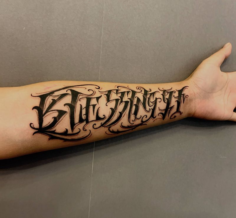 当前位置: 首页 >云南省昆明市纹身店-源刺青纹身图案>奇卡诺花体纹身图片_手部花体字纹身图案
