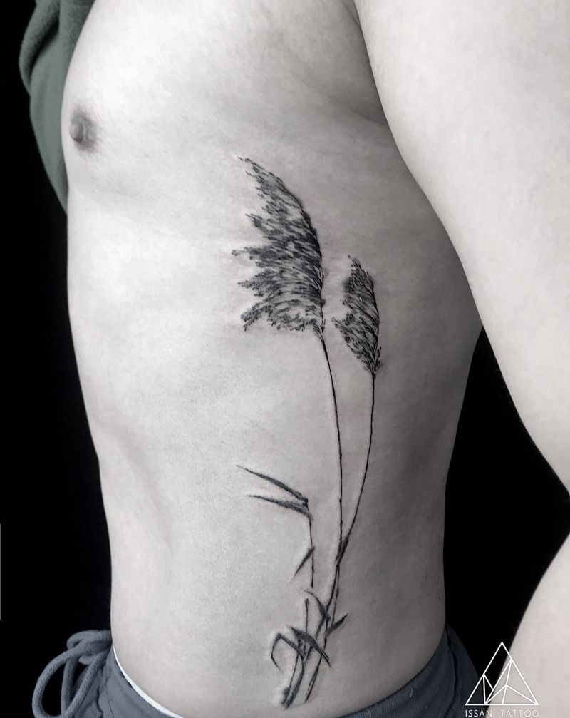 当前位置: 首页 >云南省昆明市纹身店-一山刺青纹身图案>蒲苇纹身图片_腰部水墨芦苇蒲苇水墨风纹身图案
