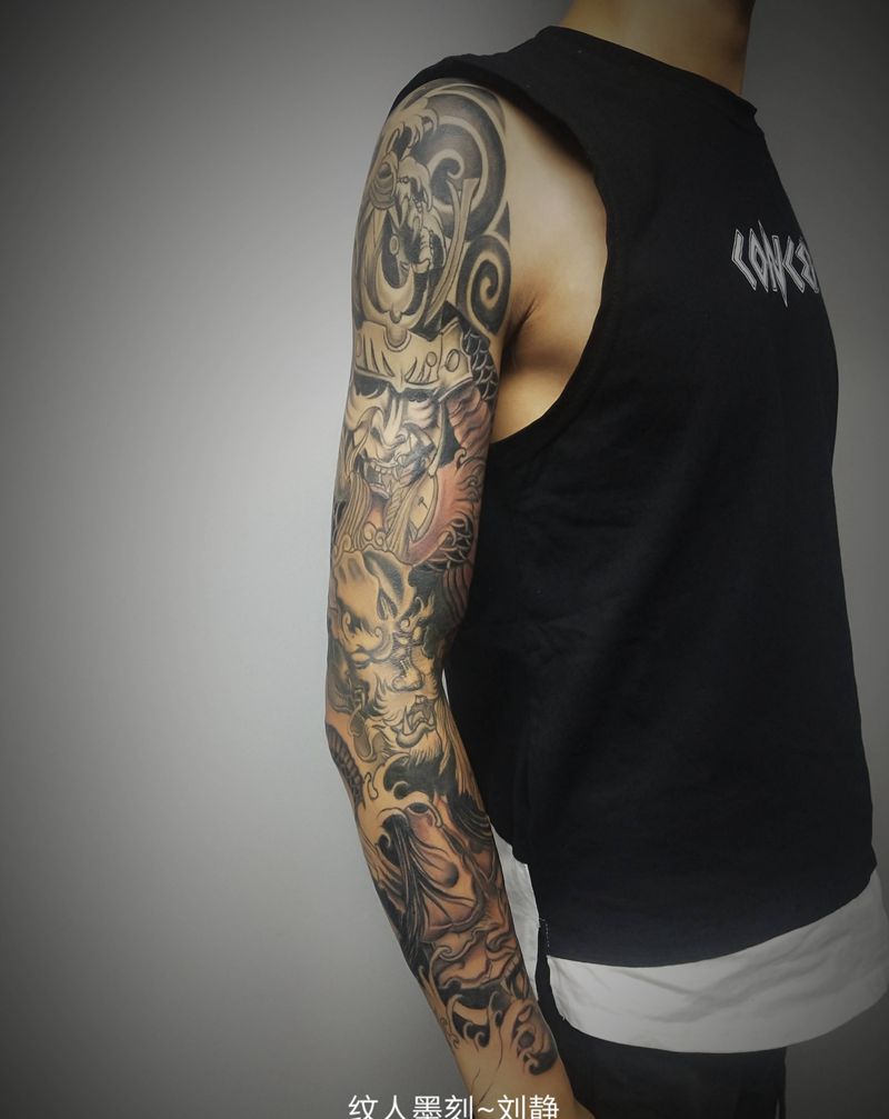当前位置: 首页 >云南省昆明市纹身店-昆明 纹人墨刻刺青纹身图案>鬼武士,班若花臂纹身图片_手臂新传统纹身图案
