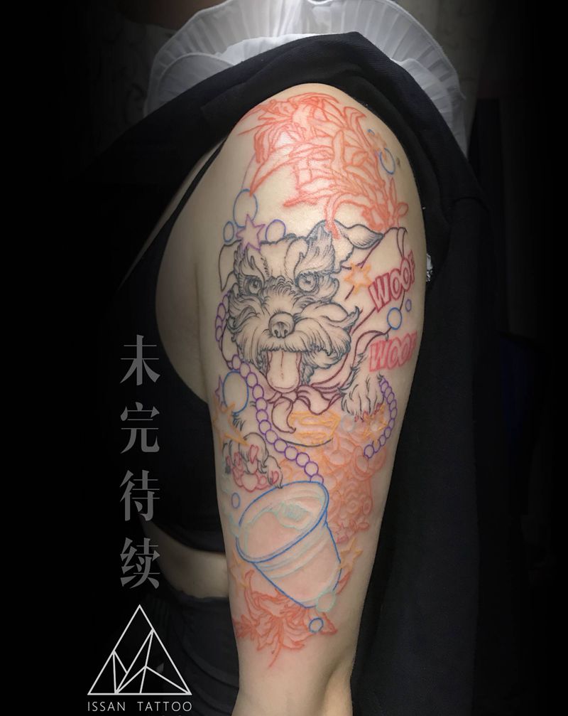 当前位置: 首页 >云南省昆明市纹身店-一山刺青纹身图案>雪纳瑞纹身图片_手臂手部New School宠物雪纳瑞聚宝盆纹身图案