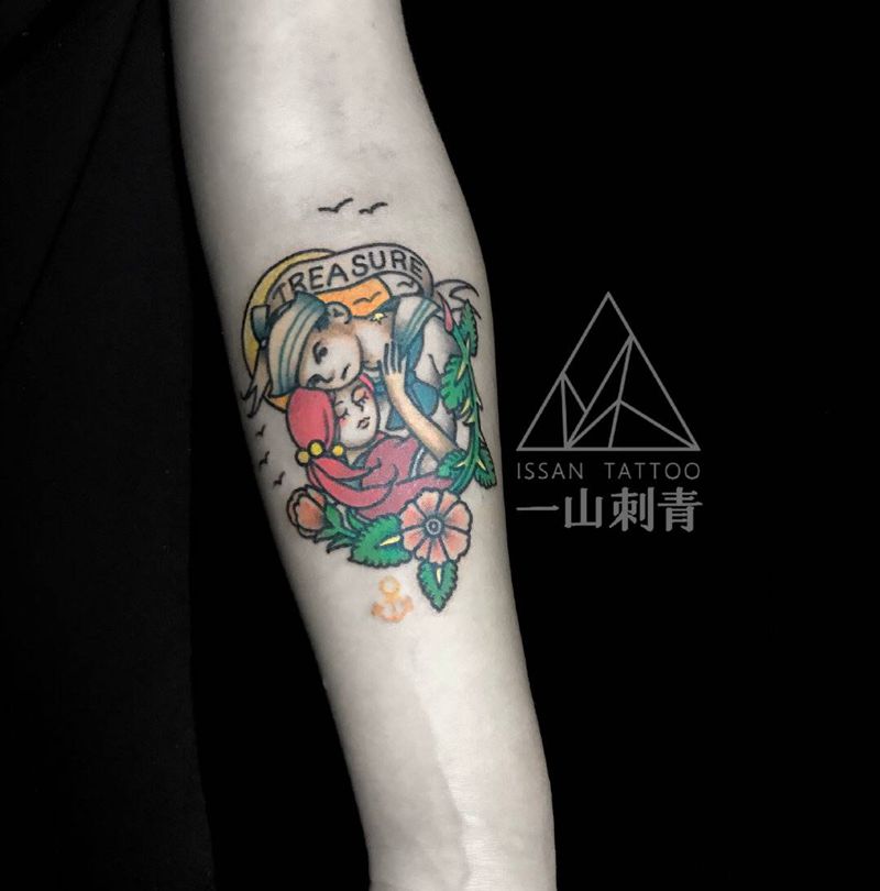 当前位置: 首页 >云南省昆明市纹身店-一山刺青纹身图案>old school jojo纹身图片_手臂手部Old Schooljojo情侣东方定助纹身图案
