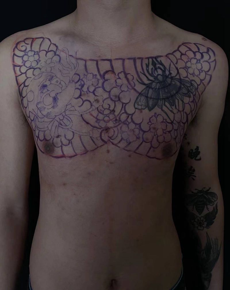 当前位置: 首页 >云南省昆明市纹身店-昆明恒艺刺青纹身图案>花胸遮盖❤️纹身图片_老传统纹身图案
