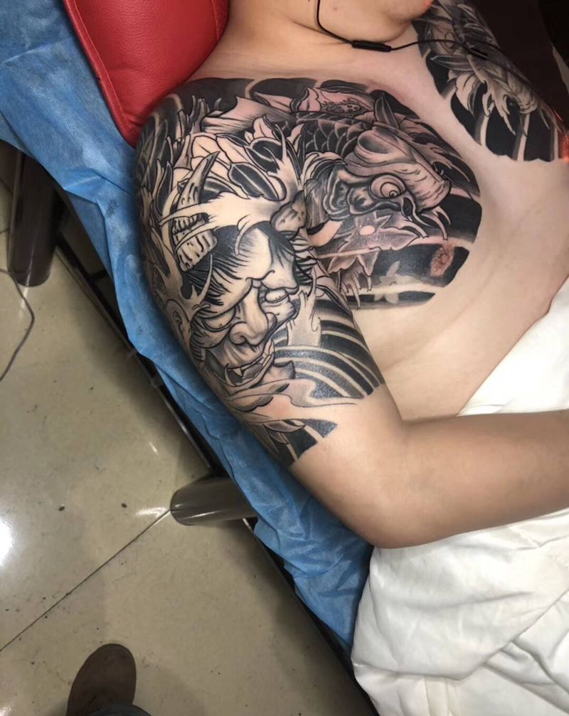 • 黑灰满背纹身图案