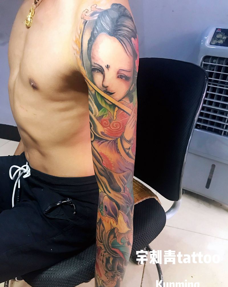 当前位置: 首页 >云南省昆明市纹身店-宇刺青tattoo纹身图案>艺妓纹身图片_手臂手部新传统纹身图案