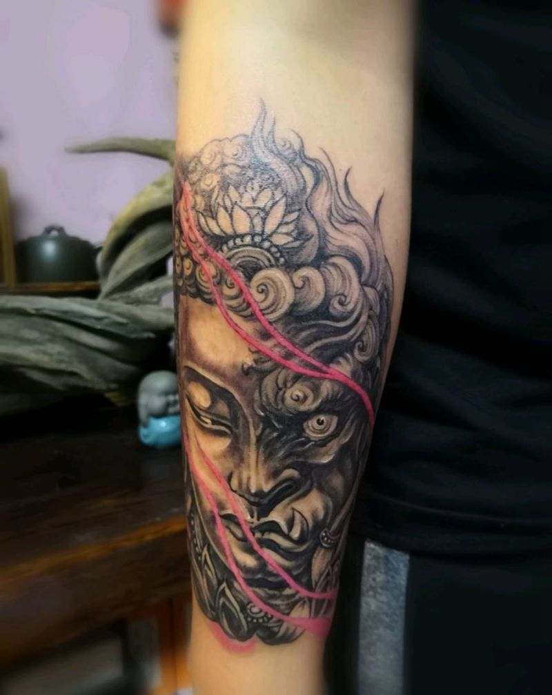 当前位置: 首页 >云南省昆明市纹身店-雕衍刺青纹身图案>一念之间纹身图片_手臂新传统纹身图案