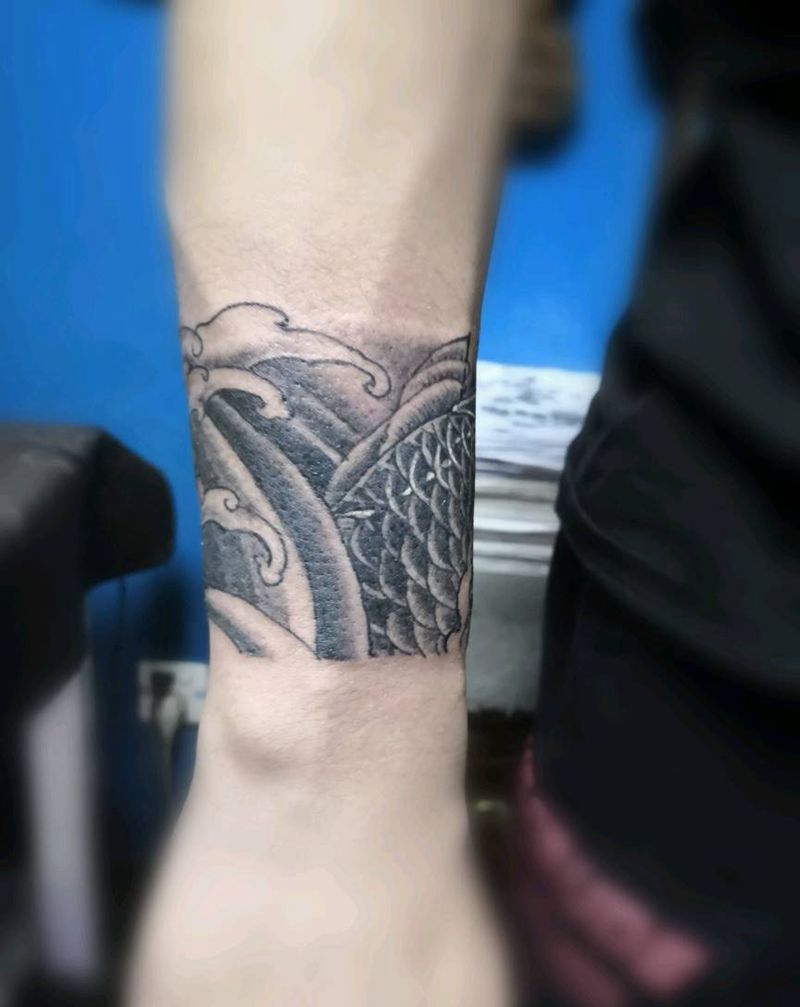 当前位置: 首页 >云南省昆明市纹身店-雕衍刺青纹身图案>鲤鱼手环纹身纹身图片_手部新传统纹身图案