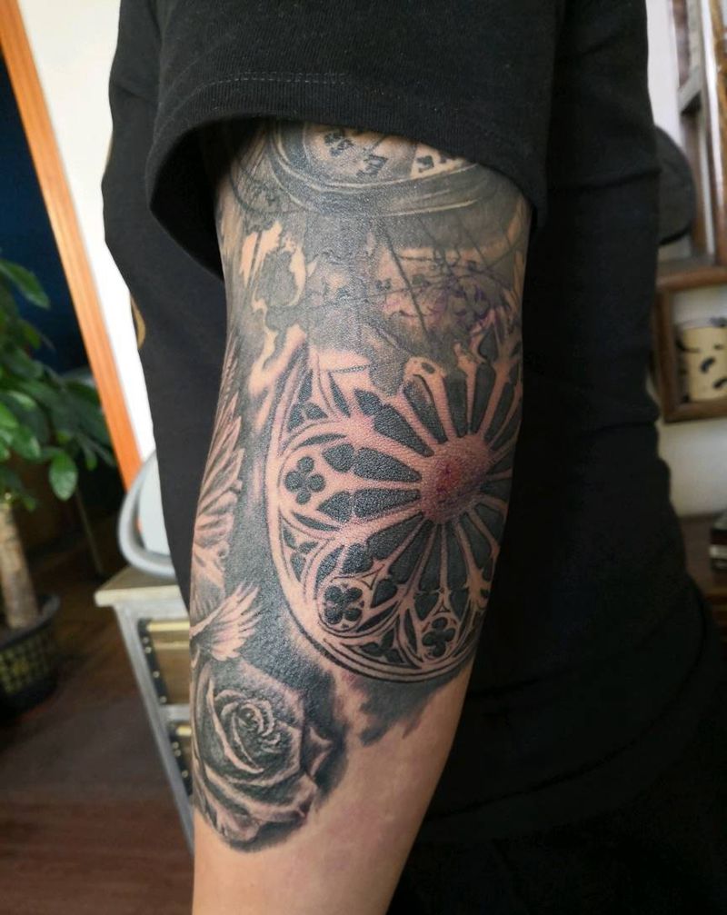 欧美,梅西同款肘花纹身图片_手臂欧美写实纹身图案