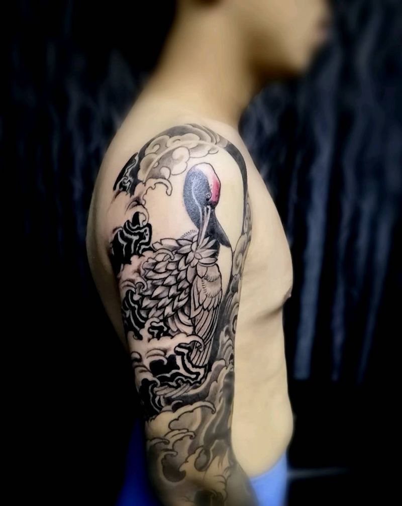 仙鹤纹身纹身图片_手臂新传统纹身图案