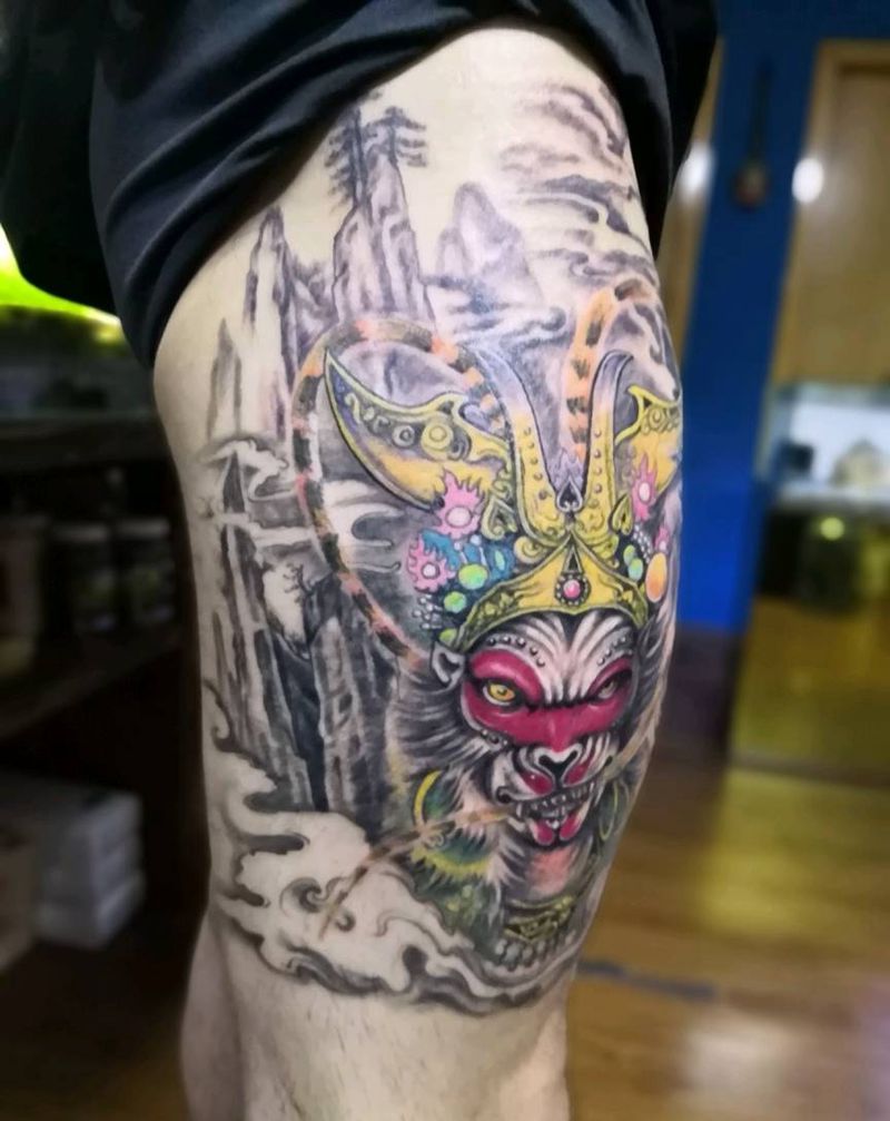 大圣归来纹身图片_腿部传统鬼神原创成品纹身图案