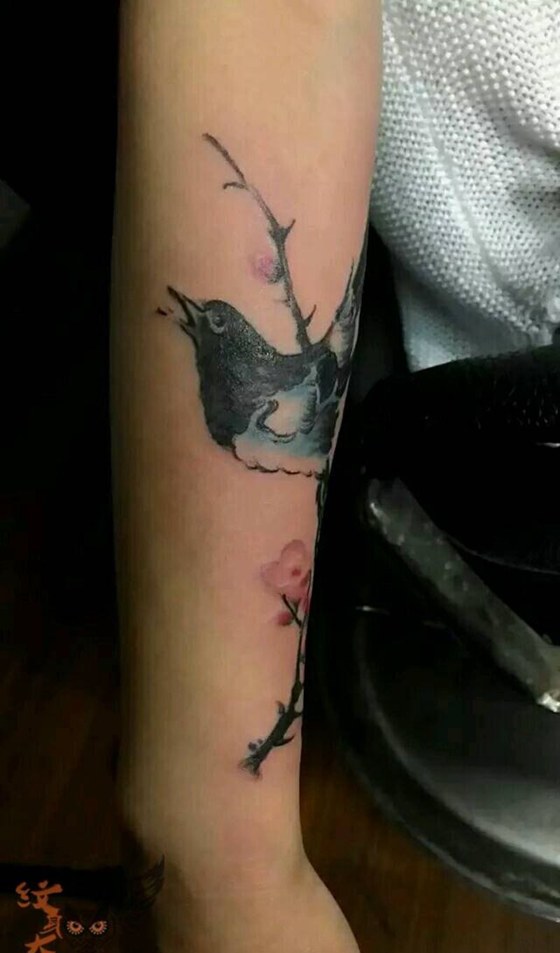 喜上眉梢纹身图片_手臂传统国画动物纹身图案
