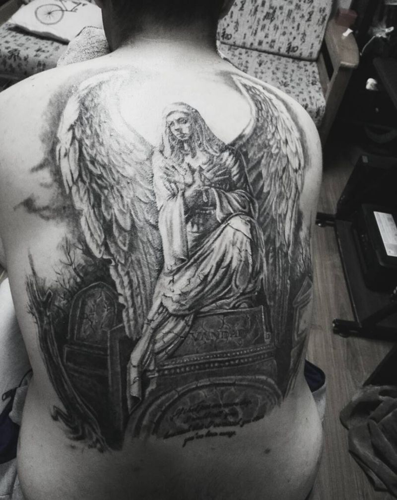 为爱理葬纹身图片_背部欧美原创成品纹身图案