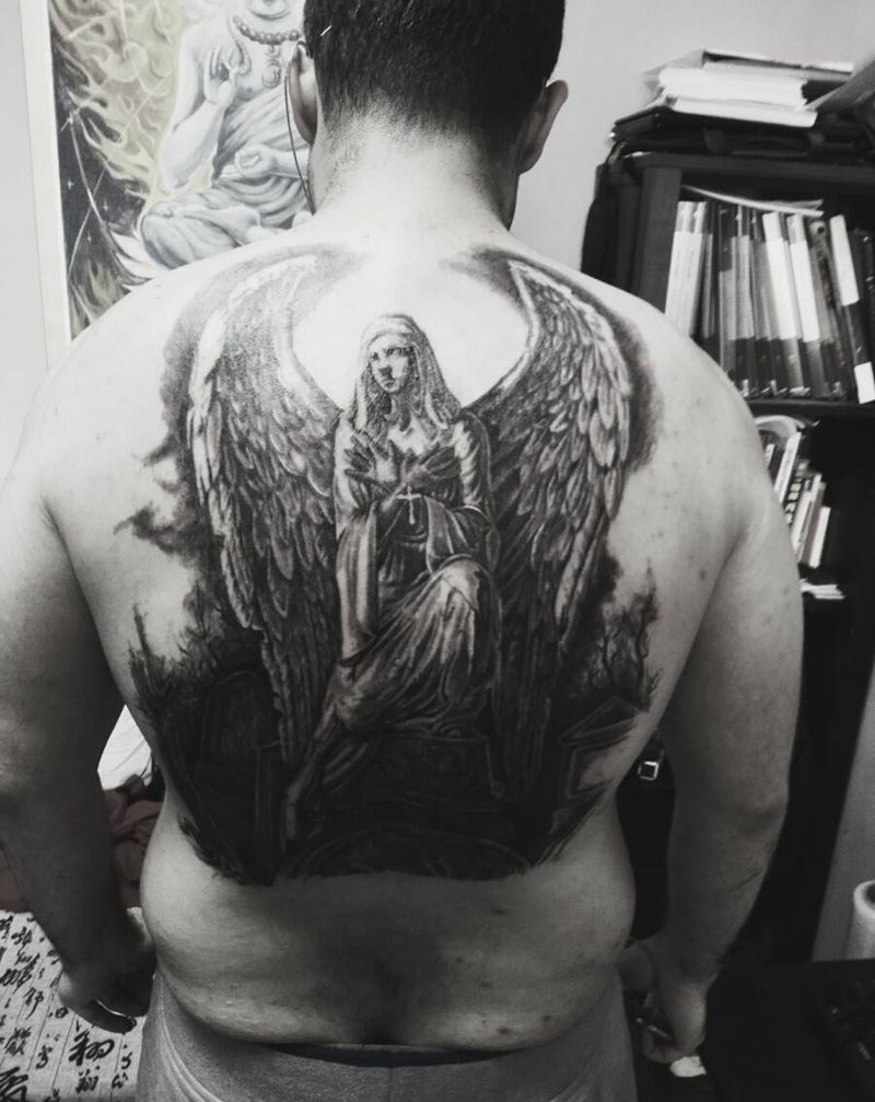 坟墓天使纹身图片_背部欧美宗教原创成品纹身图案