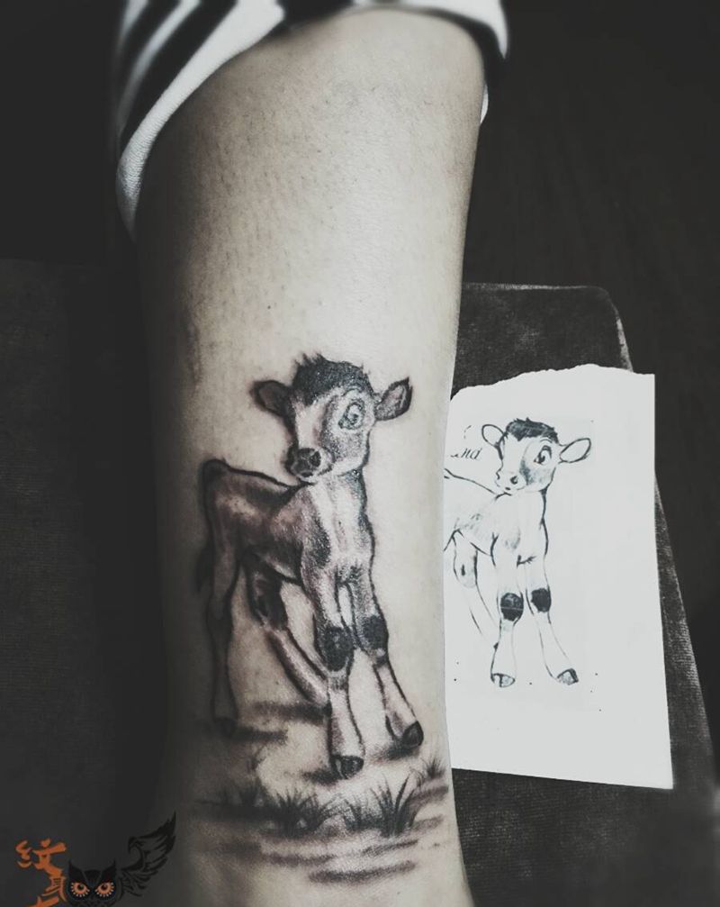 小牛牛纹身图片_脚部清新动物原创纹身图案