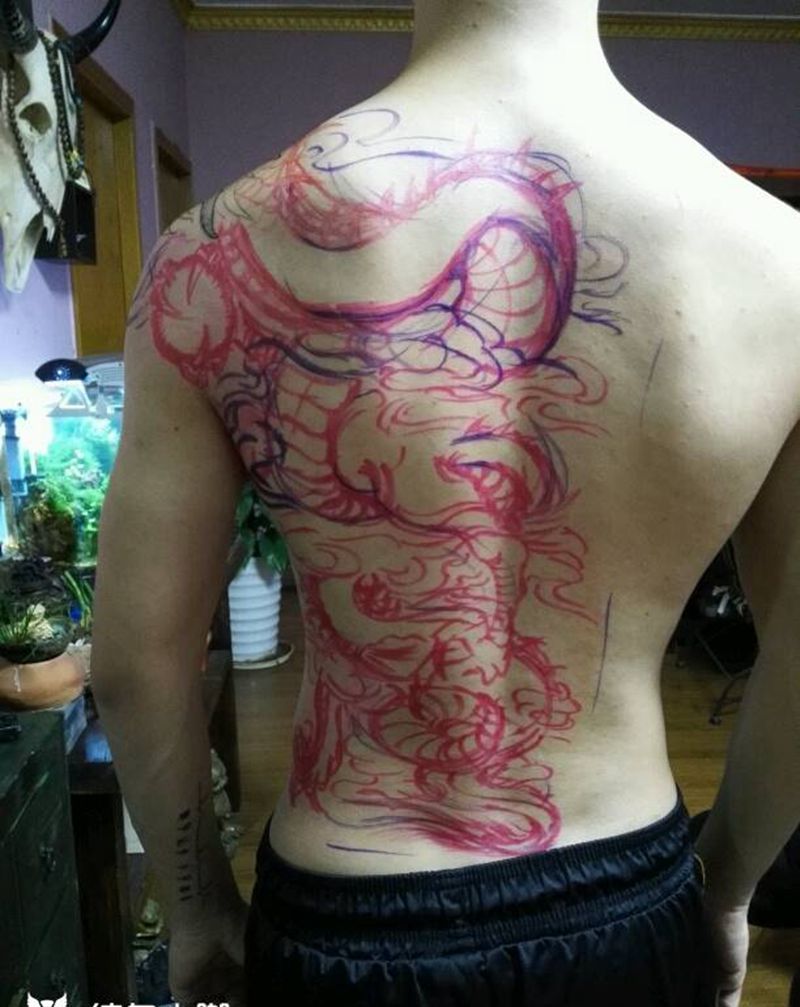 • T云龙九郎纹身图片_背部老传统云龙九郎纹身图案