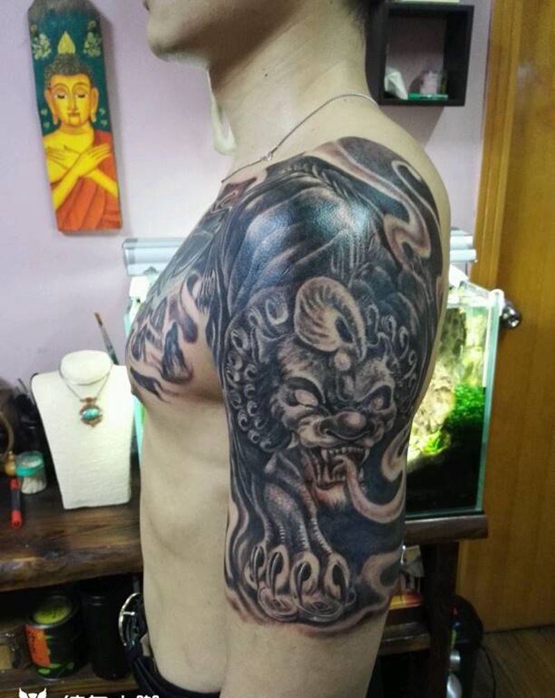 当前位置: 首页 >云南省昆明市纹身店-雕衍刺青纹身图案>招财貔貅纹身图片_手臂传统动物成品纹身图案
