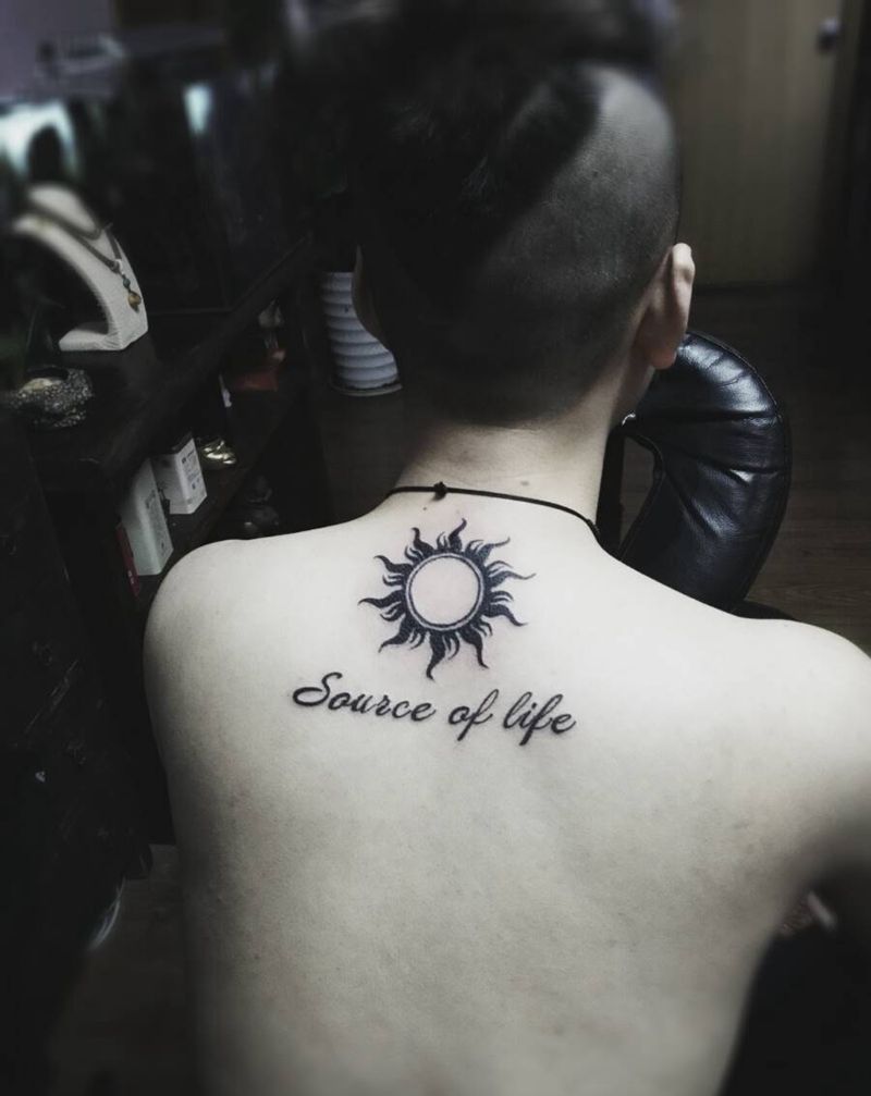 太阳英文组合纹身纹身图片_背部清新图腾原创成品纹身图案