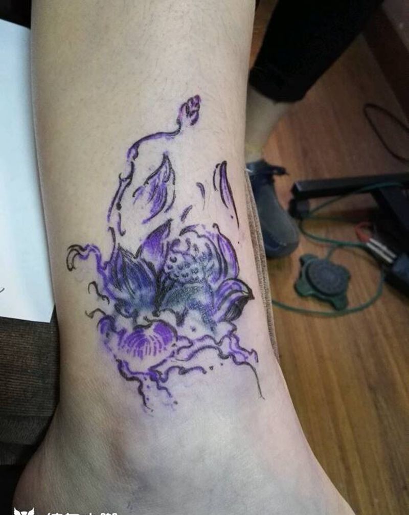 当前位置: 首页 >云南省昆明市纹身店-雕衍刺青纹身图案>莲花纹身图片_脚部国画植物成品纹身图案
