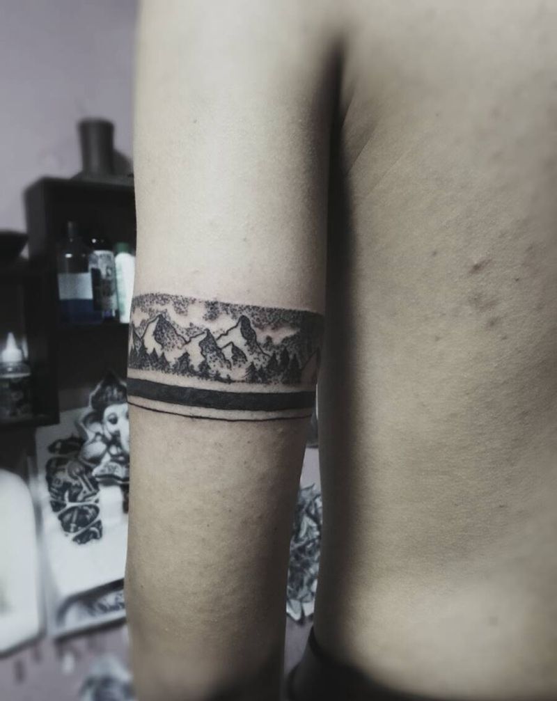 当前位置: 首页 >云南省昆明市纹身店-雕衍刺青纹身图案>点刺臂环,山河永固,日月同辉纹身图片_手臂欧美几何原创成品纹身图案