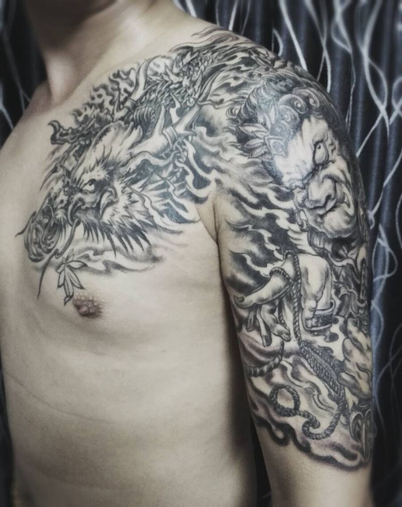 当前位置: 首页 >云南省昆明市纹身店-雕衍刺青纹身图案>明王半胛纹身图片_肩部腰部传统鬼神宗教原创成品纹身图案