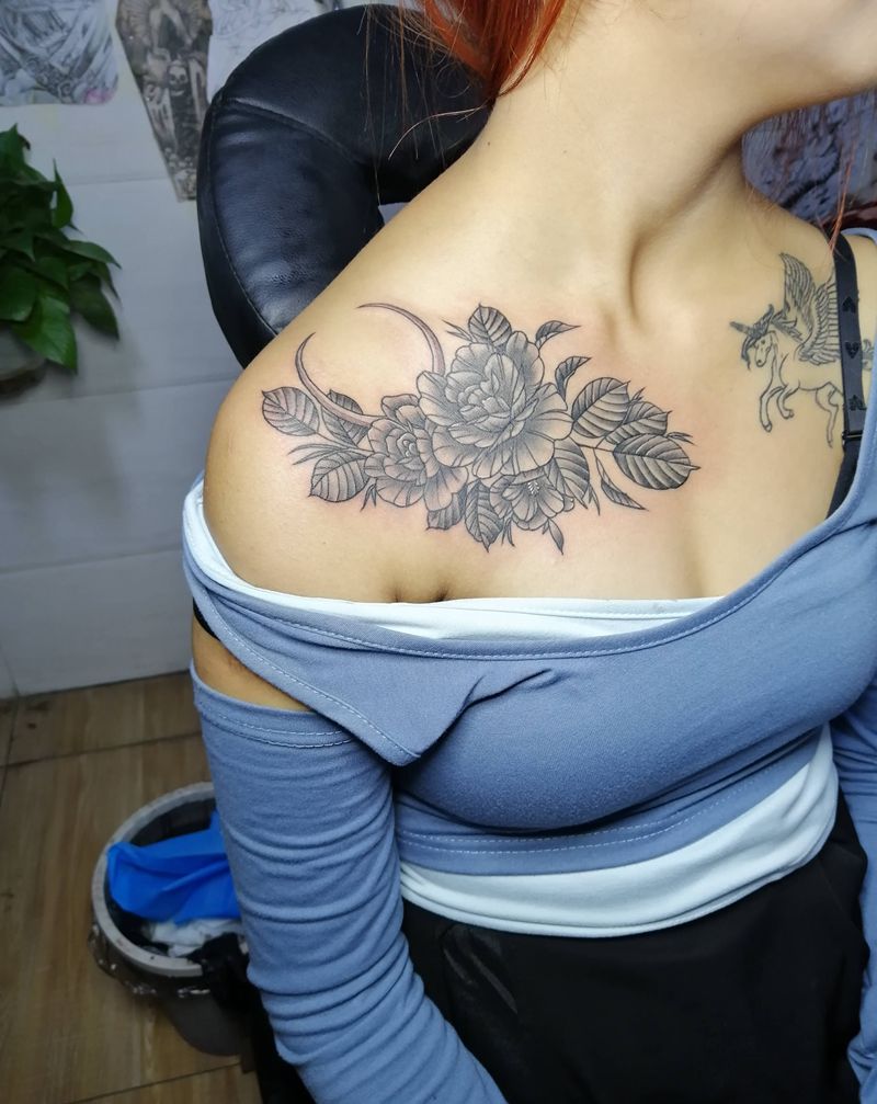 • 女性大花胸纹身_43张霸气漂亮的女性大花胸纹身图案作品