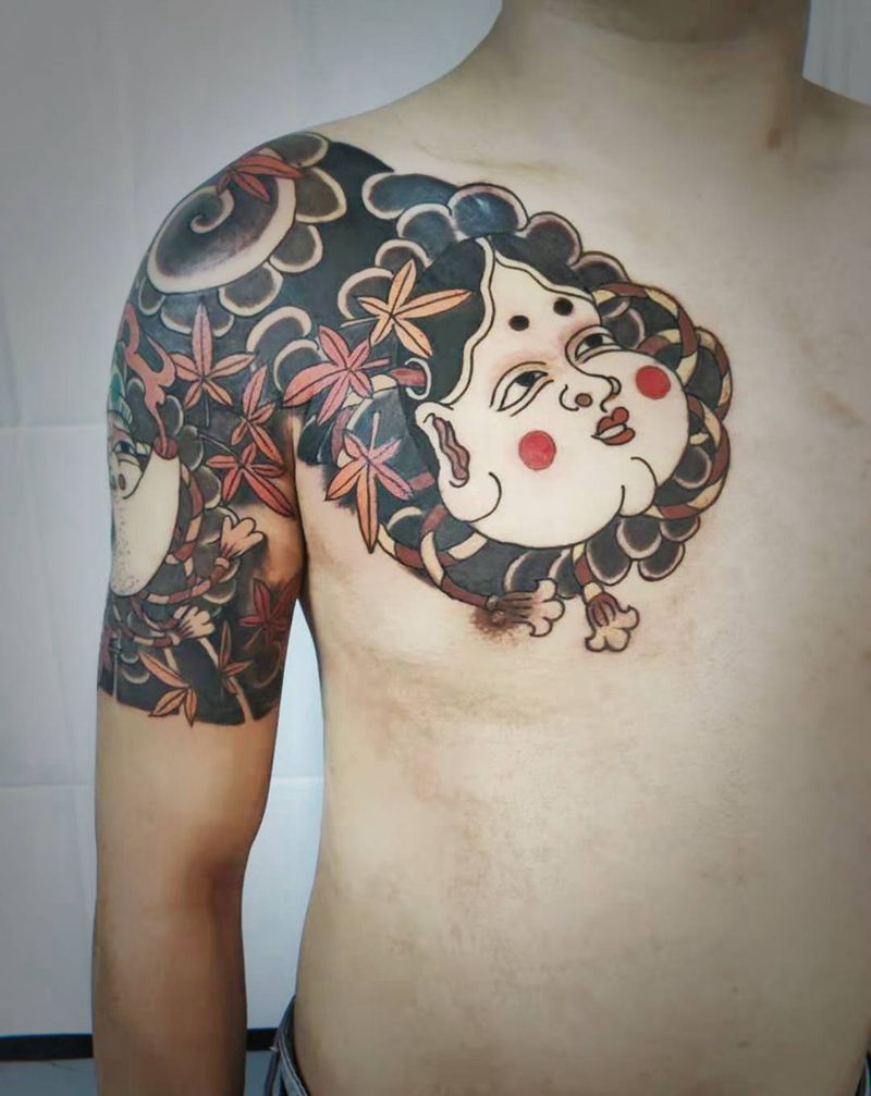 日式阿福多 吹火男纹身图片_手臂老传统纹身图案
