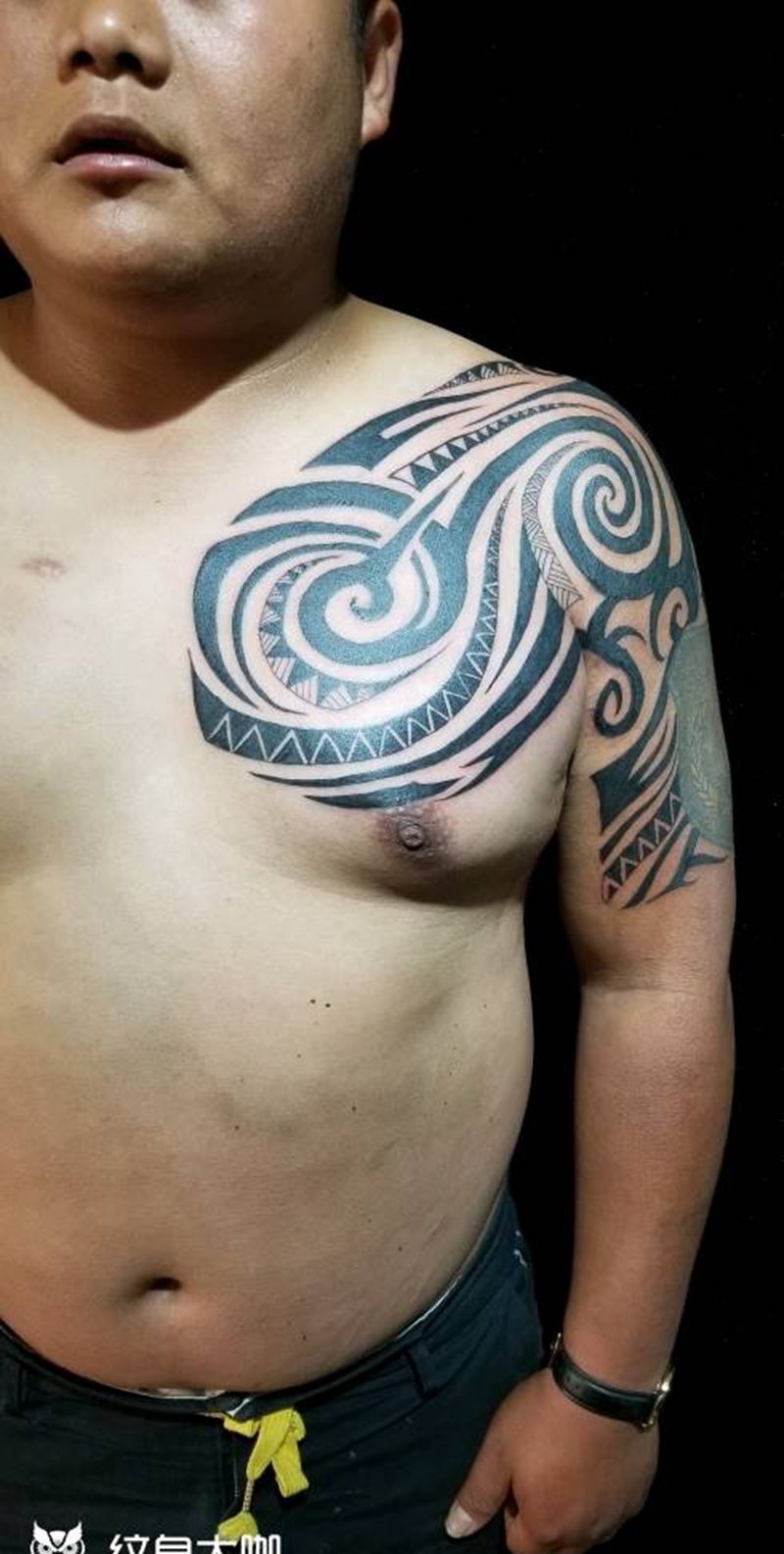 当前位置: 首页 >云南省玉溪市纹身店-幽影刺青纹身图案>图腾半甲纹身图片_胸部手臂图腾纹身图案