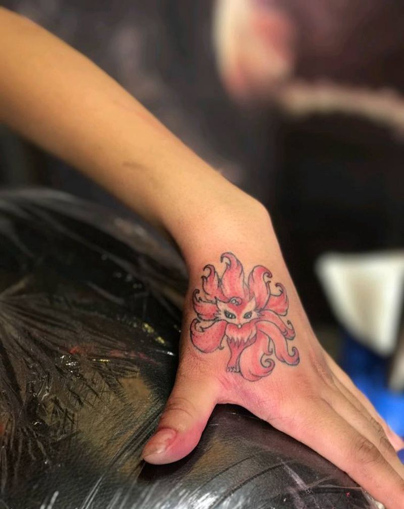 • 手背潮流时尚的玫瑰花眼睛纹身图案