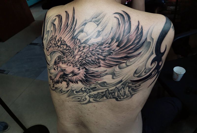 当前位置: 首页 >云南省保山市纹身店-新刺客纹身工作室纹身图案>鹰纹身图片_背部纹身图案