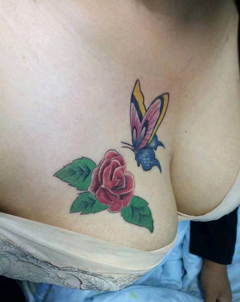 • 女性大花胸纹身_43张霸气漂亮的女性大花胸纹身图案作品