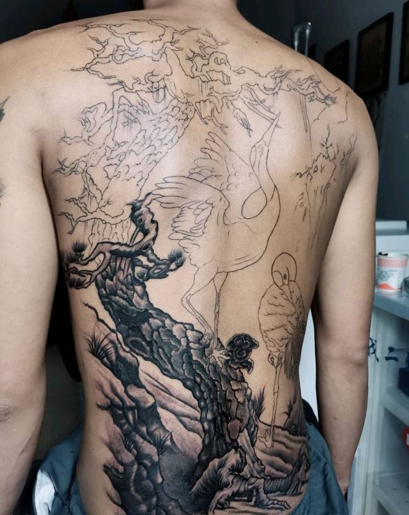 鹤,未完纹身图片_背部纹身图案