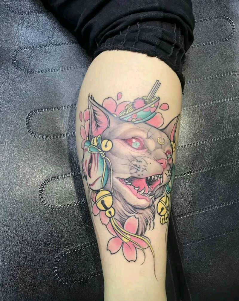 • T网红王老大花腿龙纹身图片_腿部新传统纹身图案
