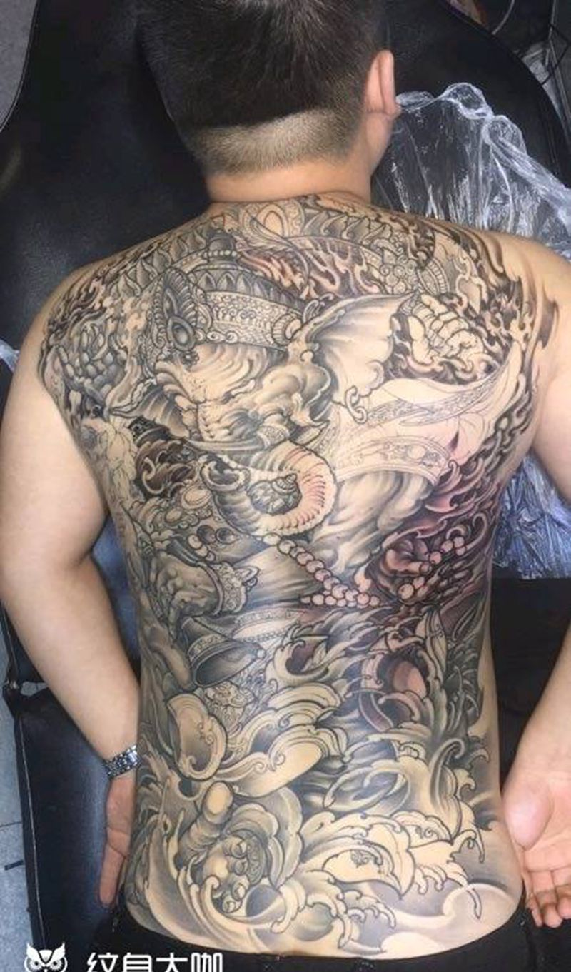 当前位置: 首页 >云南省保山市纹身店-新刺客纹身工作室纹身图案>满背象神纹身图片