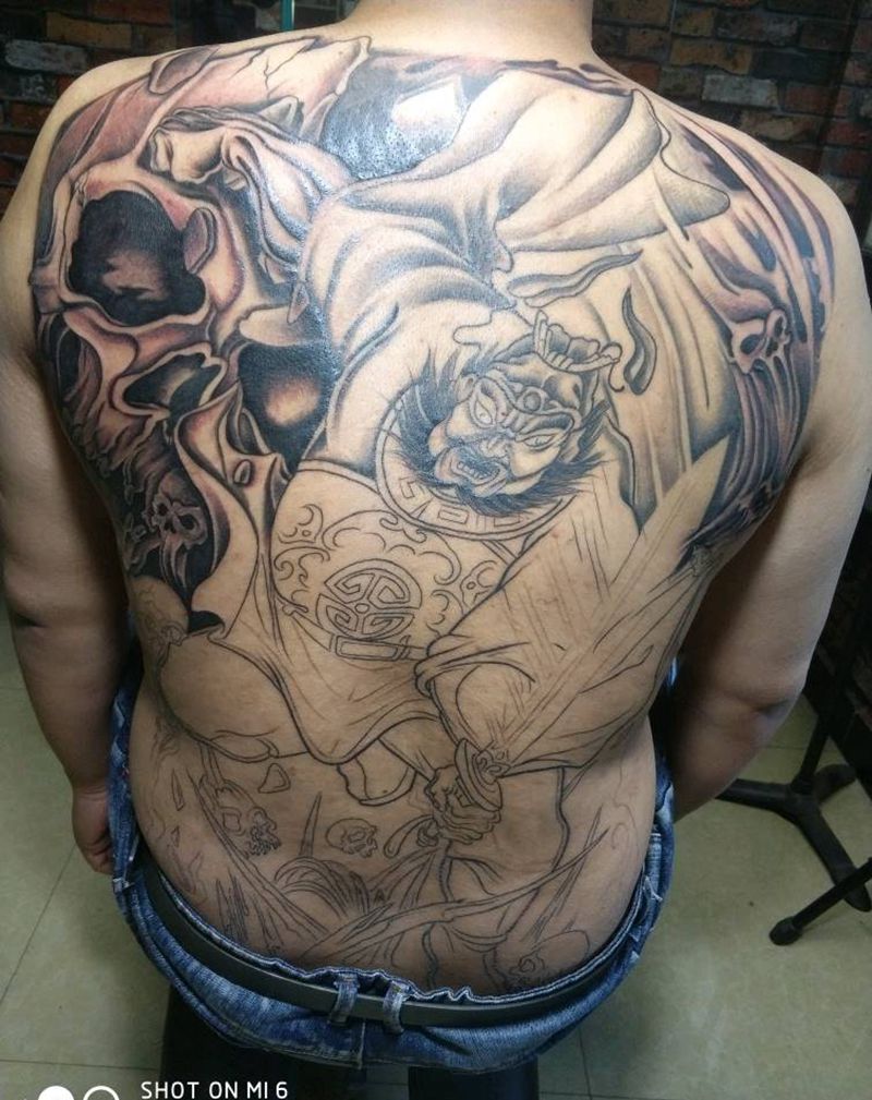 满背钟馗,未完成!纹身图片