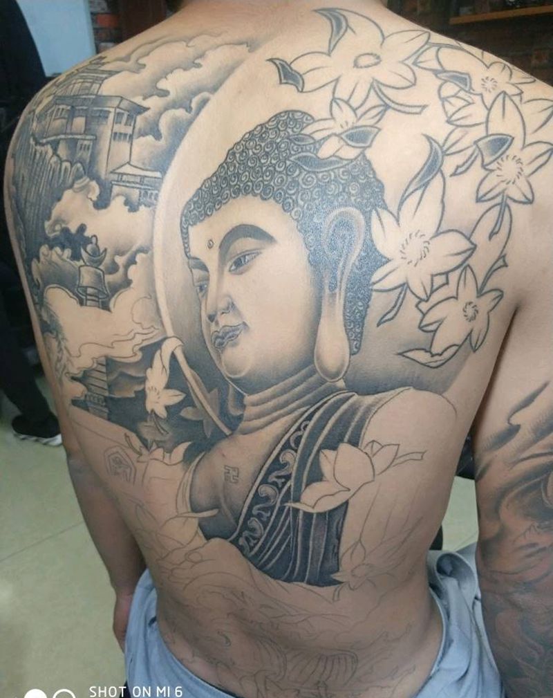 当前位置: 首页 >云南省保山市纹身店-新刺客纹身工作室纹身图案>满背佛,进度!纹身图片