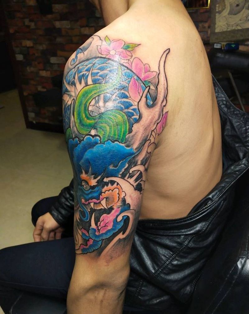 • T网红王老大花腿龙纹身图片_腿部新传统纹身图案