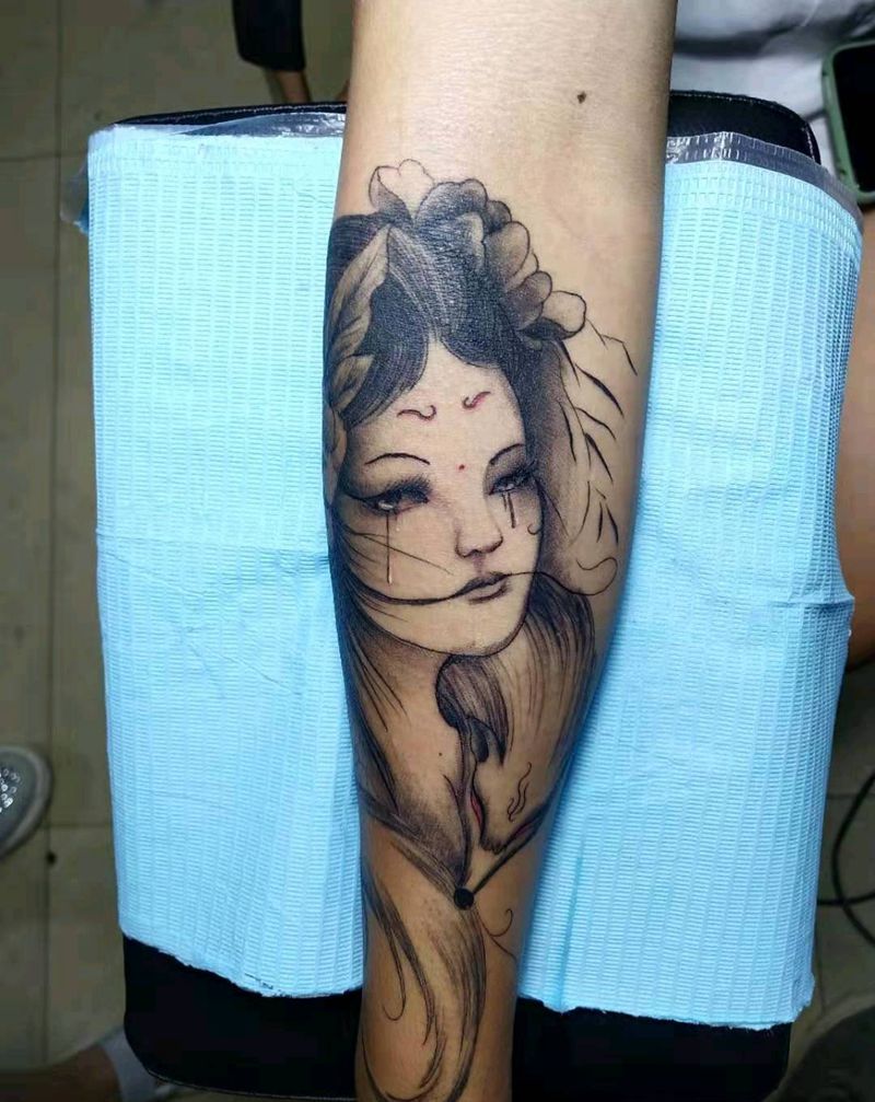 当前位置: 首页 >云南省保山市纹身店-新刺客纹身工作室纹身图案>艺妓纹身图片_手臂新传统纹身图案