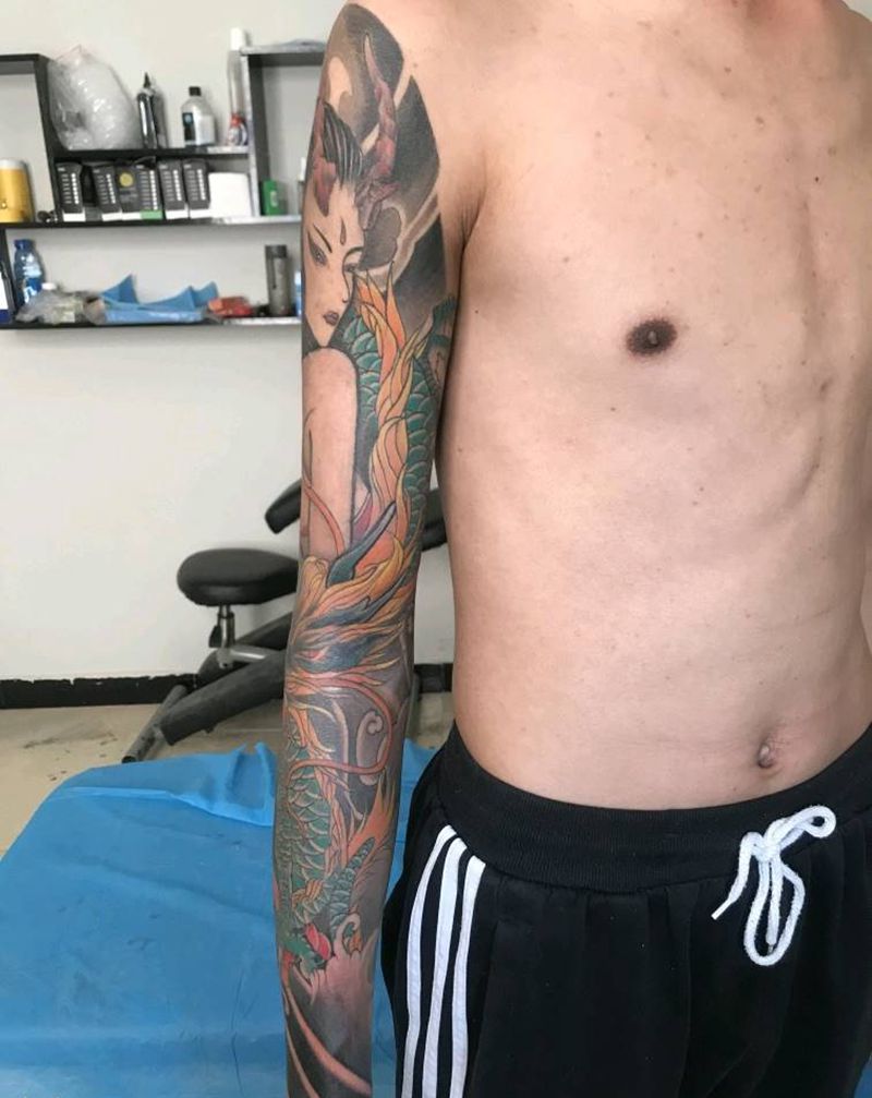 当前位置: 首页 >云南省保山市纹身店-新刺客纹身工作室纹身图案>龙伎纹身图片_手臂纹身图案