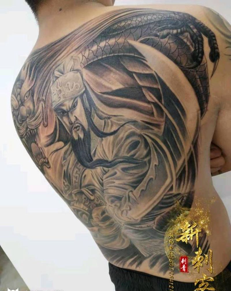 黑灰满背纹身图案