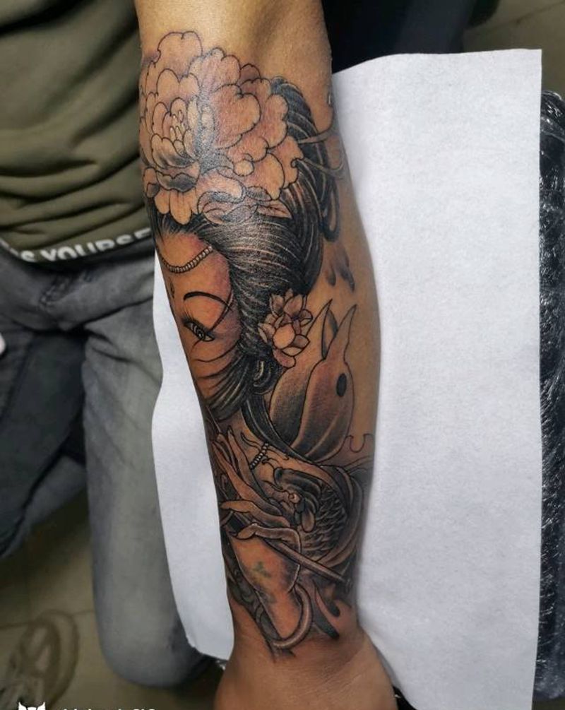 当前位置: 首页 >云南省保山市纹身店-新刺客纹身工作室纹身图案>艺伎纹身图片_手臂纹身图案