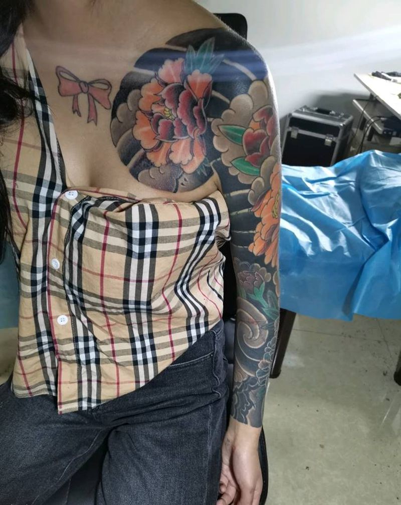 • 女性大花胸纹身_43张霸气漂亮的女性大花胸纹身图案作品