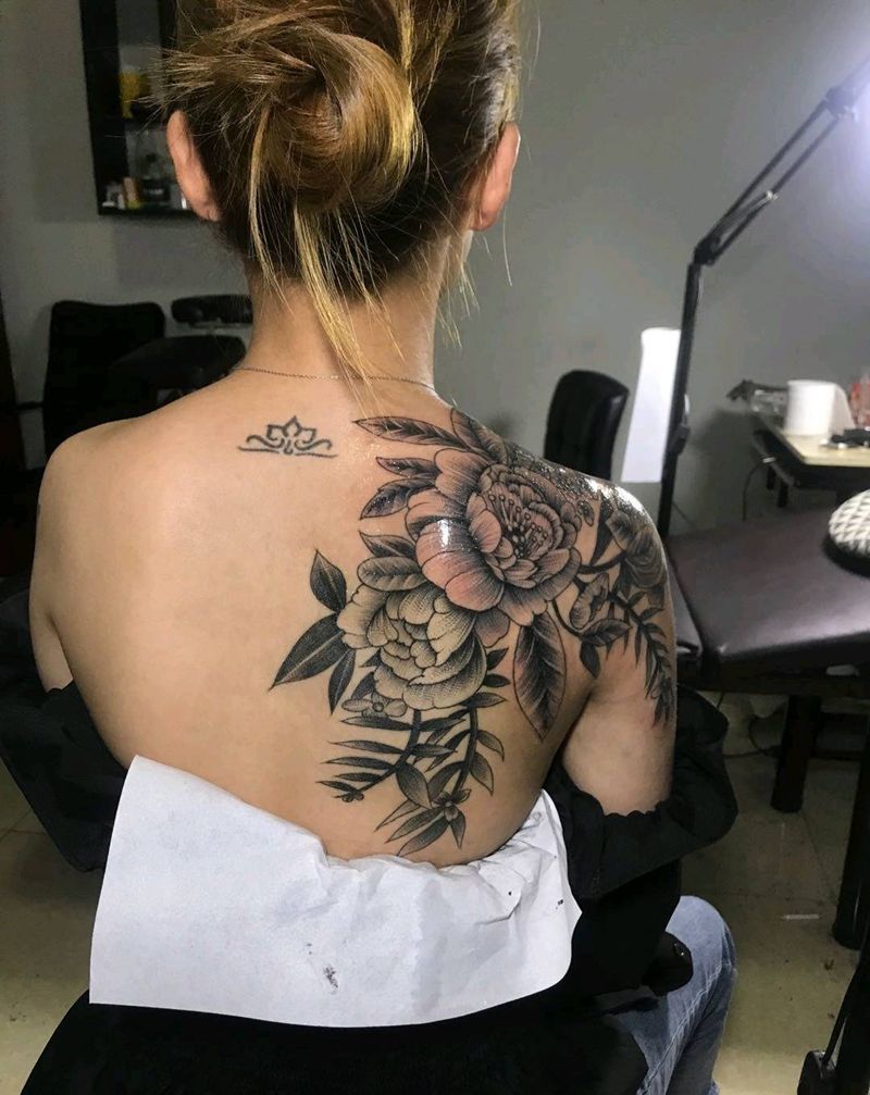 素花纹身图片_肩部背部纹身图案