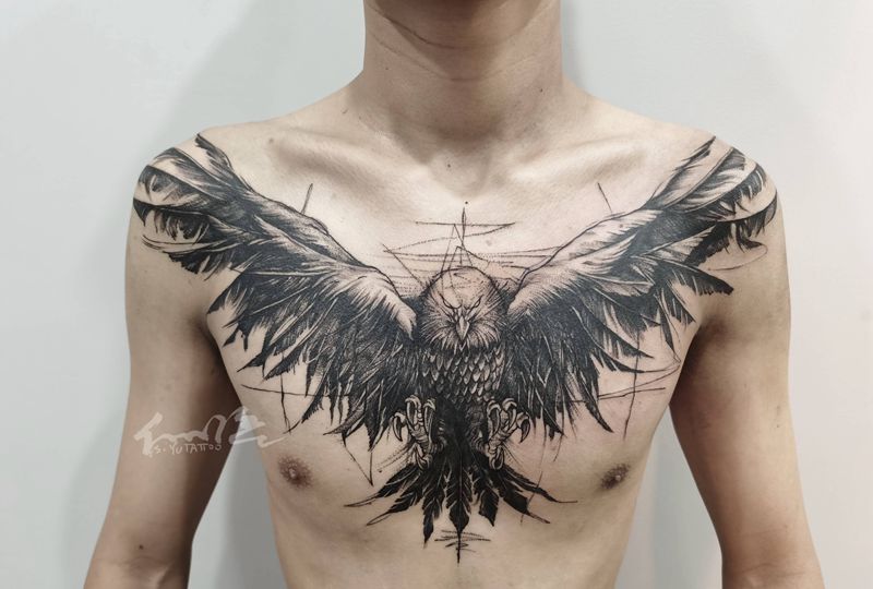 当前位置: 首页 >云南省丽江市纹身店-亖 刺青工作室纹身图案>胸鹰展翅纹身图片_胸部点刺纹身图案