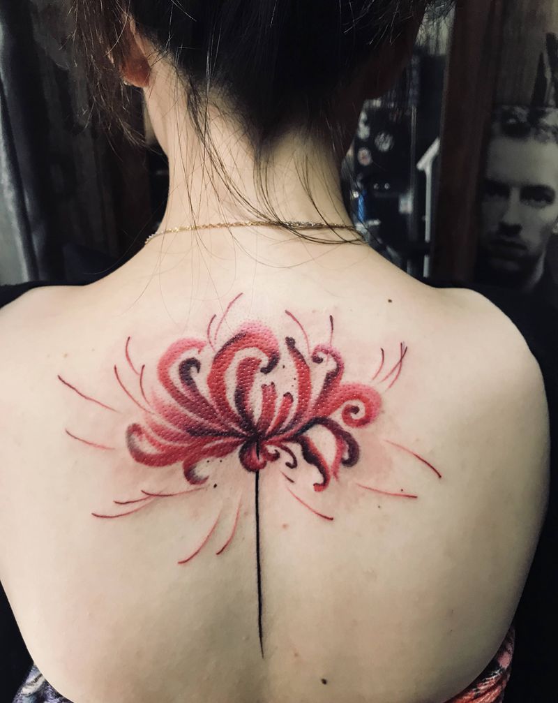 当前位置: 首页 >云南省昭通市纹身店-北龍堂Tattoo纹身图案>彼岸花纹身图片_背部水彩纹身图案