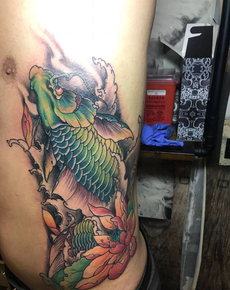 当前位置: 首页 >云南省昭通市纹身店-北龍堂Tattoo纹身图案>侧腰大鲤鱼纹身图片