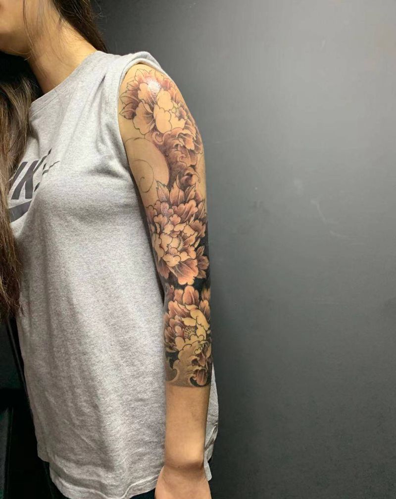 当前位置: 首页 >云南省玉溪市纹身店-彝.刺青纹身图案>牡丹七分袖未完成纹身图片_手臂肩部新传统老传统纹身图案